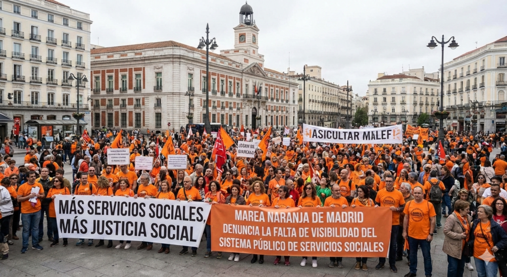 Compartimos el comunicado “Mas Servicios Sociales, más Justicia Social”, que con motivo del 20F, día de la Justicia Social, ha elaborado Marea Naranja de Madrid, en la que el Foro de Servicios Sociales participamos activamente, en el que denuncia el deterioro progresivo del Sistema Público de Servicios Sociales en atención primaria y en especializada, la precariedad laboral de sus profesionales y el consecuente empeoramiento de la calidad de atención para la ciudadanía y advierte de la necesidad inaplazable de adoptar medidas que frenen la deriva de un Sistema de Protección Social concebido para prevenir y corregir desigualdades, pero que hoy padece un trato regresivo y una preocupante invisibilización política e institucional.